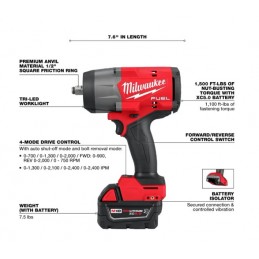 El motor sin escobillas POWERSTATE™ ofrece hasta 1,100 pies-lb de torque de sujeción y 1,500 pies-lb de torque de arranque con nuestra batería M18™ REDLITHIUM™ XC5.0, mientras el tamaño compacto de 7.6" de largo da a los usuarios un mejor acceso en espacios estrechos.