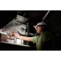 Nuestra lámpara para casco recargable mediante USB REDLTHIUM™ de MILWAUKEE® alimentada con USB REDLITHIUM™ ofrece iluminación HIGH OUTPUT™ que se mantiene más brillante por más tiempo.